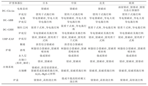 詳情摘 要:由三根電極的普通交流電弧爐發(fā)展為超高功率(UHP)及一根電極的直流(DC)電弧爐,爐體結(jié)構(gòu)有一些改變。針對(duì)各部位的損毀因素,內(nèi)襯用的耐火材料也有所發(fā)展。例如普通電弧爐的爐頂用高鋁磚、爐墻鎂磚砌筑,而UHP及DC電弧爐采用大面積水冷爐頂、爐墻,爐頂三角區(qū)采用剛玉澆注料或預(yù)制件,爐墻用鎂碳磚,蝕損嚴(yán)重部位采用噴補(bǔ)作業(yè)。還介紹了日本等一些國(guó)家DC和UHP的各種爐型用耐火材料。煉鋼電弧爐是以電極端部和爐料之間發(fā)生的電弧為熱能進(jìn)行煉鋼的設(shè)備。電弧爐以廢鋼為爐料直接煉鋼,與礦石煉鐵后再煉鋼相比,基建投資少,節(jié)能60%、節(jié)水40%、減少?gòu)U氣排放86%、減少?gòu)U渣97%[1]。交流電弧爐歷史悠久,交流電是通過(guò)三根石墨電極輸入爐內(nèi),在電極下端與金屬料之間產(chǎn)生電弧,利用電弧高溫直接加熱爐料,使煉鋼過(guò)程得以進(jìn)行。供電功率越高,爐料熔化速度越快,降低能量消耗越多,因此出現(xiàn)超高功率(UHP)電弧爐。在超高功率的基礎(chǔ)上發(fā)展了直流(DC)電弧爐煉鋼。直流電弧爐是以一根石墨電極的端點(diǎn)為陰極,爐底為陽(yáng)極,石墨電極位于爐膛中心部位。與UHP相比設(shè)備結(jié)構(gòu)簡(jiǎn)單,建設(shè)費(fèi)用低,熔池中的電流與熱量分布比較均勻,不存在過(guò)熱區(qū)域,因此耐火材料損耗比較小、節(jié)能且噪音小等。目前,煉鋼電弧爐向大型化、控制自動(dòng)化方向發(fā)展。我國(guó)的電弧爐主要用來(lái)生產(chǎn)合金鋼。煉鋼水平與工業(yè)發(fā)達(dá)國(guó)家相比差距較大,如2015年我國(guó)電爐鋼占粗鋼總產(chǎn)量的6.1%,2020年有所提高,但也不超過(guò)10%,與世界平均水平的30%相比還有較大差距。我國(guó)已經(jīng)引進(jìn)先進(jìn)水平的UHP和DC電弧爐,隨著經(jīng)濟(jì)發(fā)展,工業(yè)化程度提高,必然伴以廢鋼資源數(shù)量增加,同時(shí)發(fā)展鐵礦石直接還原煉鐵技術(shù),代替廢鋼,增加電弧爐煉鋼的爐料,還有核電的發(fā)展,使電弧爐煉鋼有了物質(zhì)保證。電弧爐的內(nèi)襯是耐火材料構(gòu)成的,隨著UHP和DC技術(shù)的發(fā)展,需要新型優(yōu)質(zhì)耐火材料與之相配套。有人說(shuō)[2]:沒(méi)有優(yōu)質(zhì)爐襯、爐底耐火材料支持長(zhǎng)壽爐齡,超高功率電弧爐就無(wú)法發(fā)揮高效生產(chǎn)的優(yōu)勢(shì)。爐底耐火材料是直流電弧爐得以實(shí)現(xiàn)的必要條件,反映了煉鋼與耐火材料技術(shù)的互相影響,互為依存,在電弧爐煉鋼系統(tǒng)優(yōu)化生產(chǎn)中有不可分割的作用。1 電弧爐的結(jié)構(gòu)變化傳統(tǒng)的電弧爐由爐頂(又稱爐蓋)、爐墻、爐坡、爐底和出鋼槽構(gòu)成,全部用耐火材料構(gòu)筑,外包鋼制爐殼。爐墻一側(cè)設(shè)有爐門(mén),另一側(cè)為出鋼口,并與出鋼槽相連。而UHP和DC電弧爐采用偏心爐底出鋼,使?fàn)t體由傾動(dòng)式改為固定式,爐底有供氣攪拌設(shè)置,爐頂安裝氧-燃料燒嘴,在爐底偏心位置設(shè)置出鋼口,代替出鋼槽。由于取消了傾動(dòng)設(shè)備,擴(kuò)大了水冷面積,緩和了爐襯的損毀,適當(dāng)降低了出鋼溫度,并縮短了出鋼時(shí)間,從而降低生產(chǎn)成本。爐墻采用鑲砌水冷箱式水冷套措施,其內(nèi)表面噴涂一層耐火涂料,使其掛渣形成保護(hù)層,可有效降低耐火材料消耗,但電耗可能增加。國(guó)外有的電弧爐功率達(dá)1 000 kV·A/t以上,爐墻壽命達(dá)2 000爐次以上,水冷爐蓋壽命達(dá)4 000爐次,降低耐火材料消耗60%以上。2 耐火材料內(nèi)襯的損毀因素電弧爐內(nèi)襯的耐火材料長(zhǎng)期處于高溫、熔渣侵蝕和急熱急冷狀態(tài)下,工作條件極其惡劣。在煉鋼的熔化期和氧化期,不致于因高溫?fù)p壞爐襯,但在還原期的鋼液溫度相當(dāng)高,又受電弧直接輻射(有時(shí)溫度達(dá)4 000℃以上),爐襯很容易造成熔融損壞。出完鋼裝料時(shí),爐襯溫度突然下降,裝完料開(kāi)始送電,溫度又逐漸升高,這種急冷急熱是爐襯剝落的直接原因,主要是爐頂容易剝落。耐火材料內(nèi)襯損毀的主要因素包括[3]:(1)化學(xué)侵蝕。FeO或渣中SiO2與耐火材料中的CaO、MgO之間的化學(xué)反應(yīng),使?fàn)t襯變?yōu)槿墼鴮?dǎo)致?lián)p毀。(2)耐火材料內(nèi)襯中的碳成分被含氧成分(如FeO、O2、MgO等)氧化,導(dǎo)致耐火材料脫碳而損毀。(3)沖刷和機(jī)械沖擊。鋼水或熔渣流過(guò)耐火材料表面,以物理性磨損或沖刷爐襯,而導(dǎo)致內(nèi)襯損毀;在出鋼口、渣線、電極口或排氣口平臺(tái)等沖刷嚴(yán)重,廢鋼等爐料吊入往往撞擊爐襯而損毀。(4)水化。在生產(chǎn)過(guò)程中,往往會(huì)出現(xiàn)爐頂或爐墻漏水或滲水,還有水蒸氣,與堿性耐火材料中的MgO、CaO進(jìn)行水化反應(yīng),使內(nèi)襯損毀。3 電弧爐用耐火材料根據(jù)電弧爐的結(jié)構(gòu),由于各部位承受的熱負(fù)荷大小不同,與熔渣、鋼水接觸作用及機(jī)械損壞程度存在差異,不同部位必須采用不同的耐火材料[4]。3.1 爐頂(蓋)我國(guó)中小電弧爐普遍采用燒成或不燒高鋁磚,局部用高鋁質(zhì)或剛玉質(zhì)不定形耐火材料預(yù)制件。大型超高功率電弧爐和直流電弧爐采用水冷技術(shù),除三角區(qū)外,爐頂耐火材料不是關(guān)鍵。三角區(qū)由于強(qiáng)烈熱震及